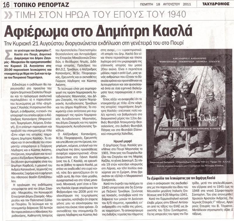 - η πολεμική δράση του Δ. Γ. Κασλά